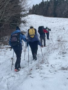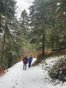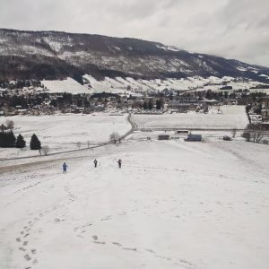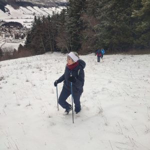 Départ du parking de l’Aigle à Lans-en-Vercors, direction le Peuil pour travailler les techniques de marche nordique. Peu de neige en cet après-midi, donc pas besoin de raquettes ou de crampons….juste nos bâtons et notre bonne humeur! 😄